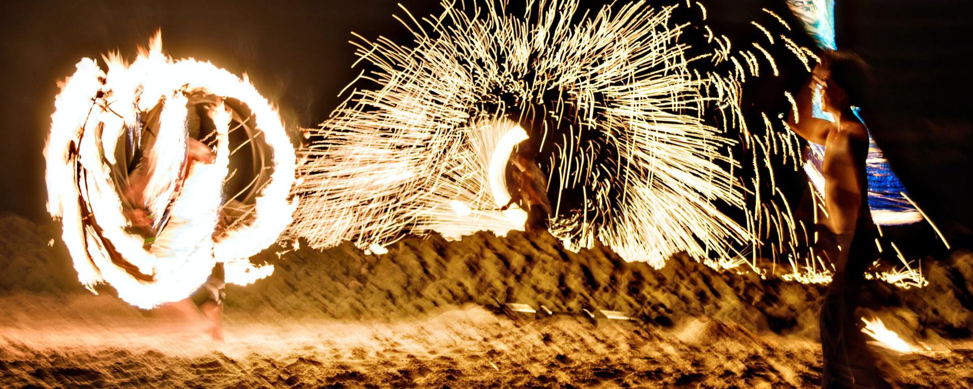 The fire-people were laughing and drinking. They stopped and stared. The heat of the flames reached her skin and she explained (in English) that they had been swimming and that someone had taken everything. The fire-people said wait a minute, they’d get some dry clothes. She and M were each given a clown suit, orange with pink pom-pom buttons. The material was cheap, scratchy but it felt good anyway. The fire-people had just finished a show, what the French would call a spectacle. They shared their beers, and she felt safe, but their laughter seemed as if it belonged somewhere else.