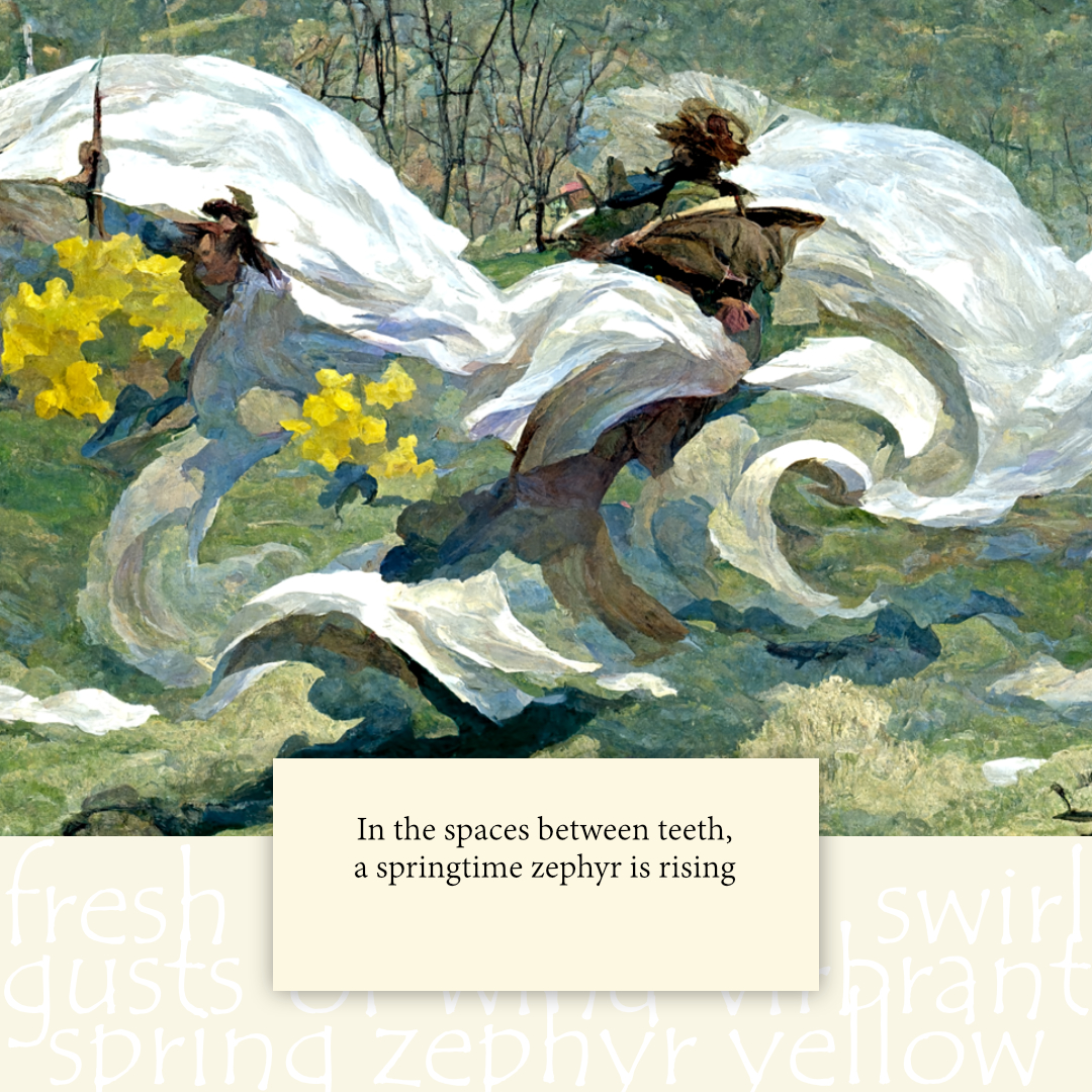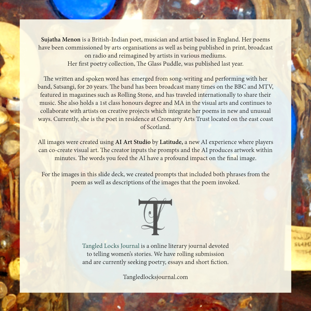 For the images in this slide deck, we created prompts that included both phrases from the poem as well as descriptions of the images that the poem invoked.
