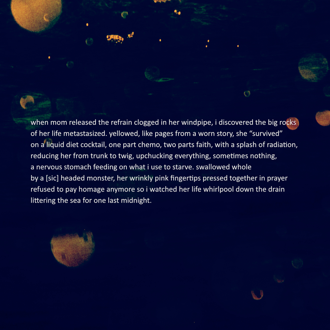 of her life metastasized. yellowed, like pages from a worn story, she “survived”
