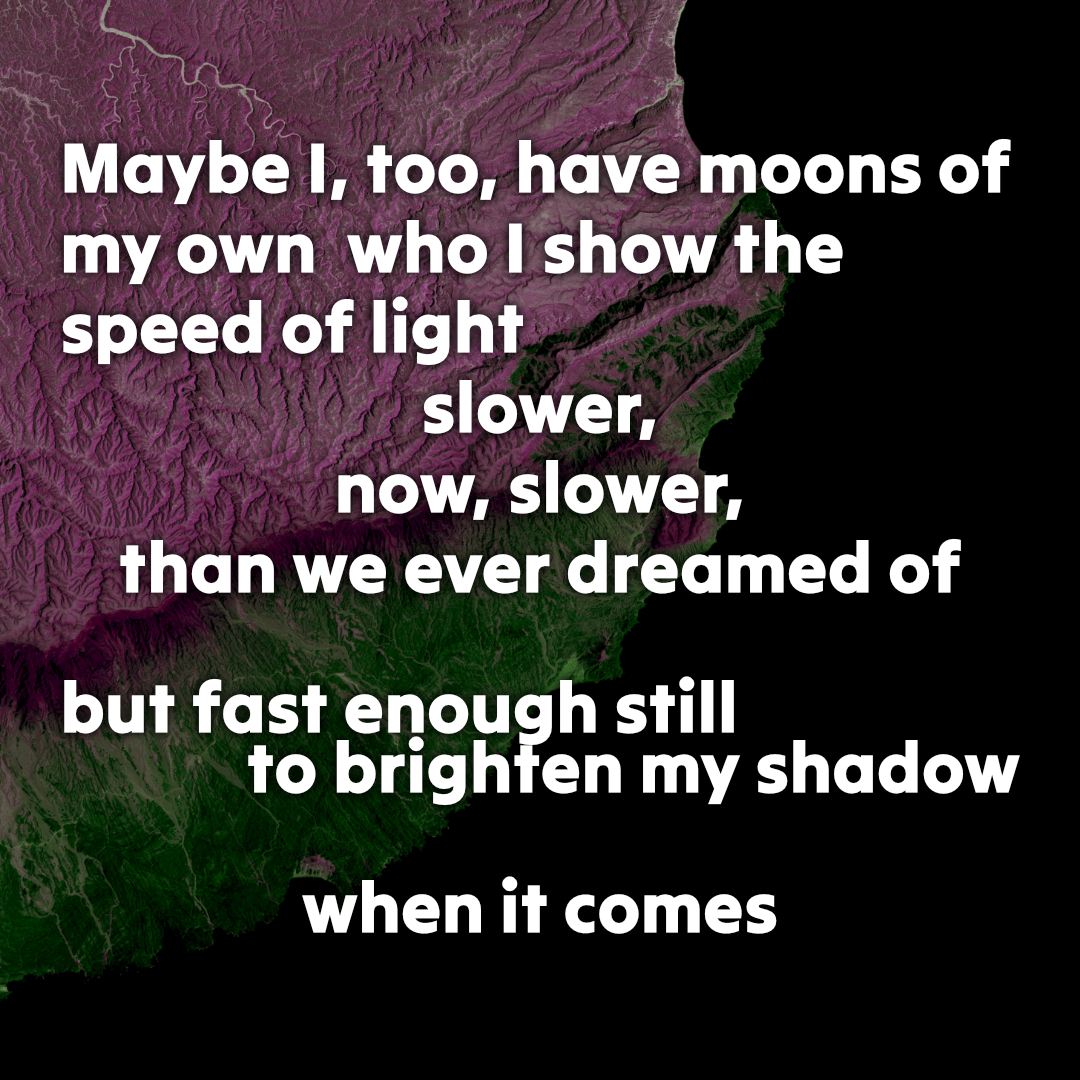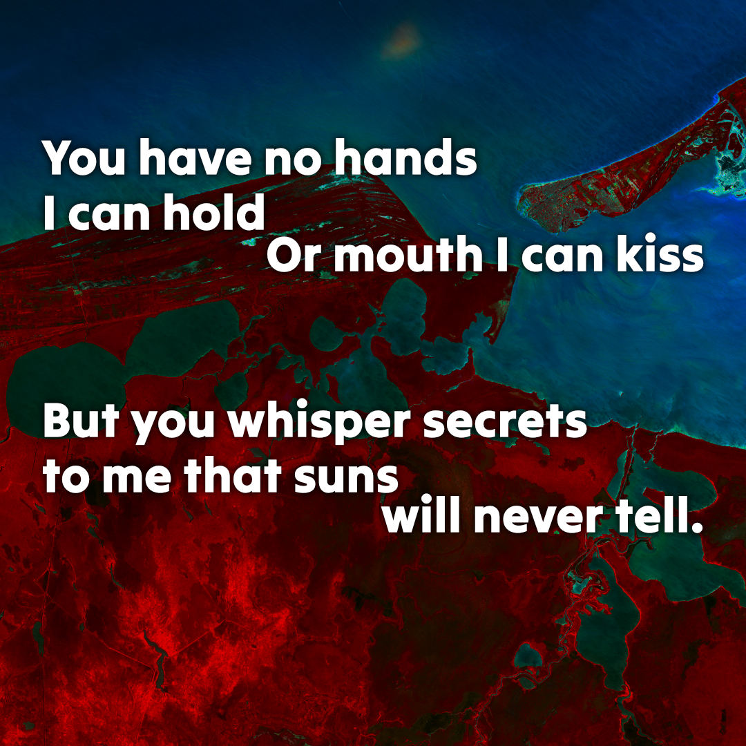Io: A Love Poem To never touch your atmosphere To never breathe you in To know you don't know, you don't know To change one, changes Every One When you changed my world you changed The World To always see you through a lens To always magnify Makes you closer, makes us close Makes your world my world too You don't think like me; You don't think at all And yet you are speaking in circles, in ovals, in sunbeams, and you yell in the dark You have no hands I can hold Or mouth I can kiss But you whisper secrets to me that suns will never tell. I revolve: But there are other planets, I know whose pull keeps you there, turning at such speed in my sight Maybe I, too, have moons of my own who I show the speed of light slower, now, slower, than we ever dreamed of but fast enough still to brighten my shadow when it comes The candle you lit in my darkness will come back to you in time To light One lights Every One - We Thank You.